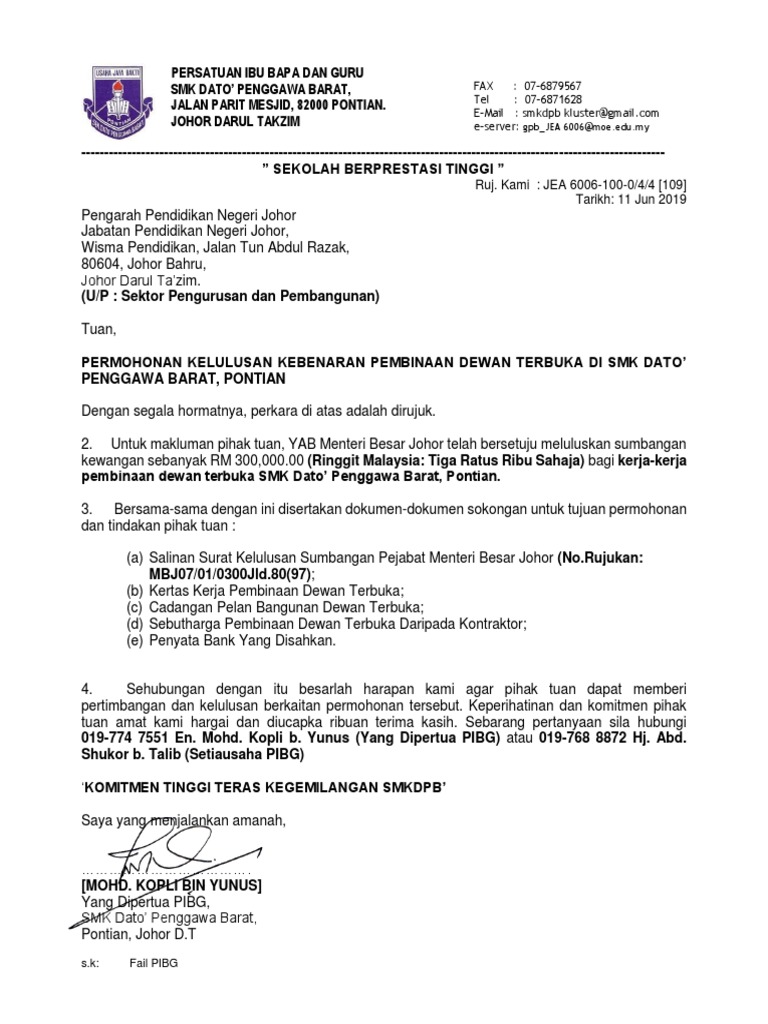 Surat Permohonan Kelulusan Kepada Jpn Pdf